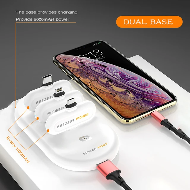 1100 mAh Power bank For iPhone/Micro USB/Type C Magnetic USB data cable Fast charging Finger Pow Mini Powerbank External Battery